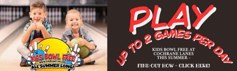 Kids Bowl Free at Cochrane Lanes – up to two games per day!