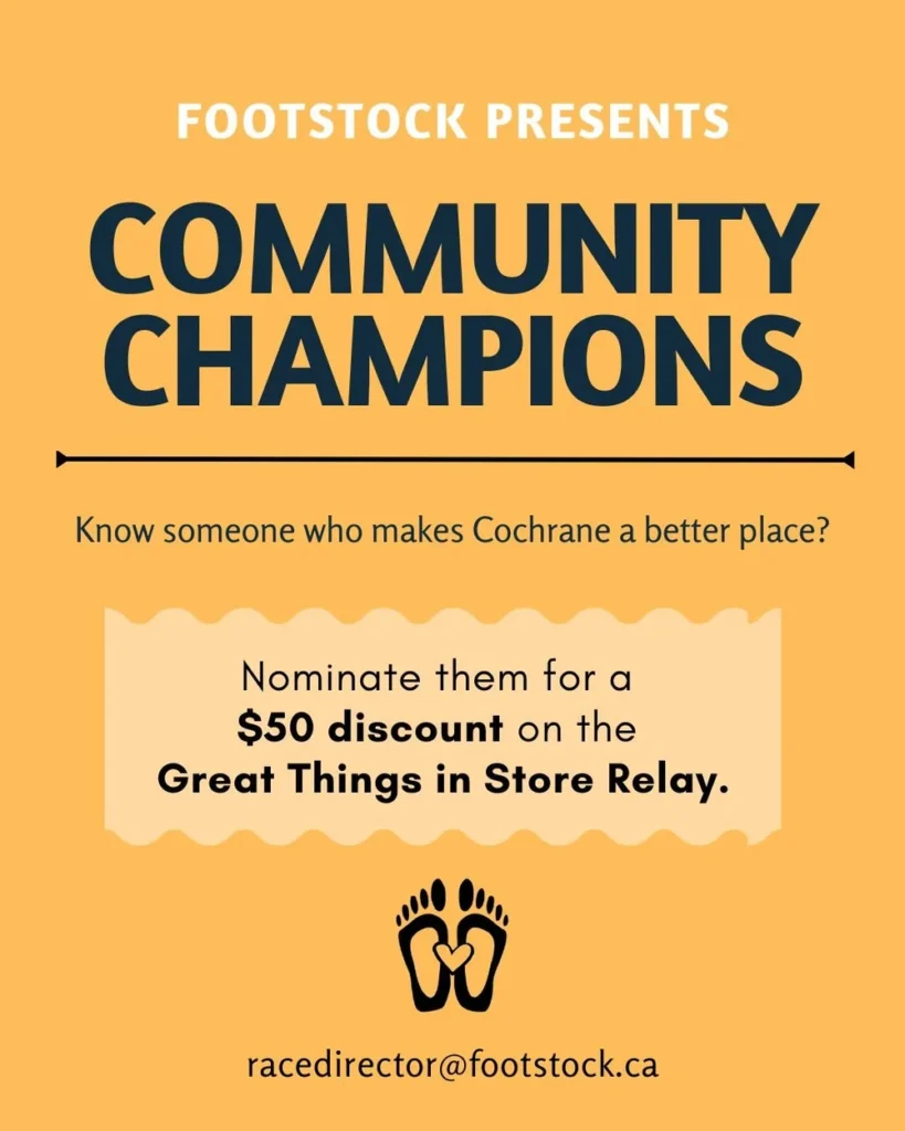 FOOTSTOCK RACE WEEKEND 2026 is sure to be a great day in Cochrane, whether you’re cheering from the sidelines, running in one of the races, or volunteering behind the scenes… Mark your calendar for May 31, 2026!