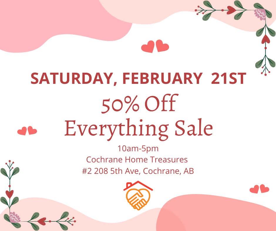 Don’t forget our 50% OFF EVERYTHING sale is happening this Saturday, February 21st at Cochrane Home Treasures ![]()