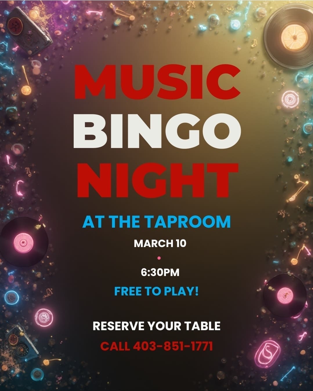 Get ready for an entertaining night packed with laughter, great tunes, friendly competition, great food and great beer! Don’t miss out on the fun. Always free to play, but please call the Taproom to reserve your table! 403-851-1771 Fun begins at 6:30pm