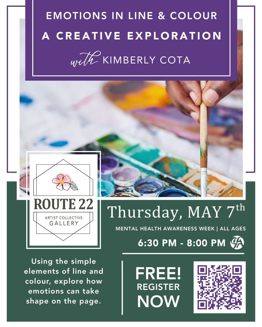 May 7 Emotions in Line & Colour: A Creative Exploration! 6:30 pm - 8:00 pm Route 22 Artist Collective Gallery 208 1st Street W., Cochrane Event Details Get Directions