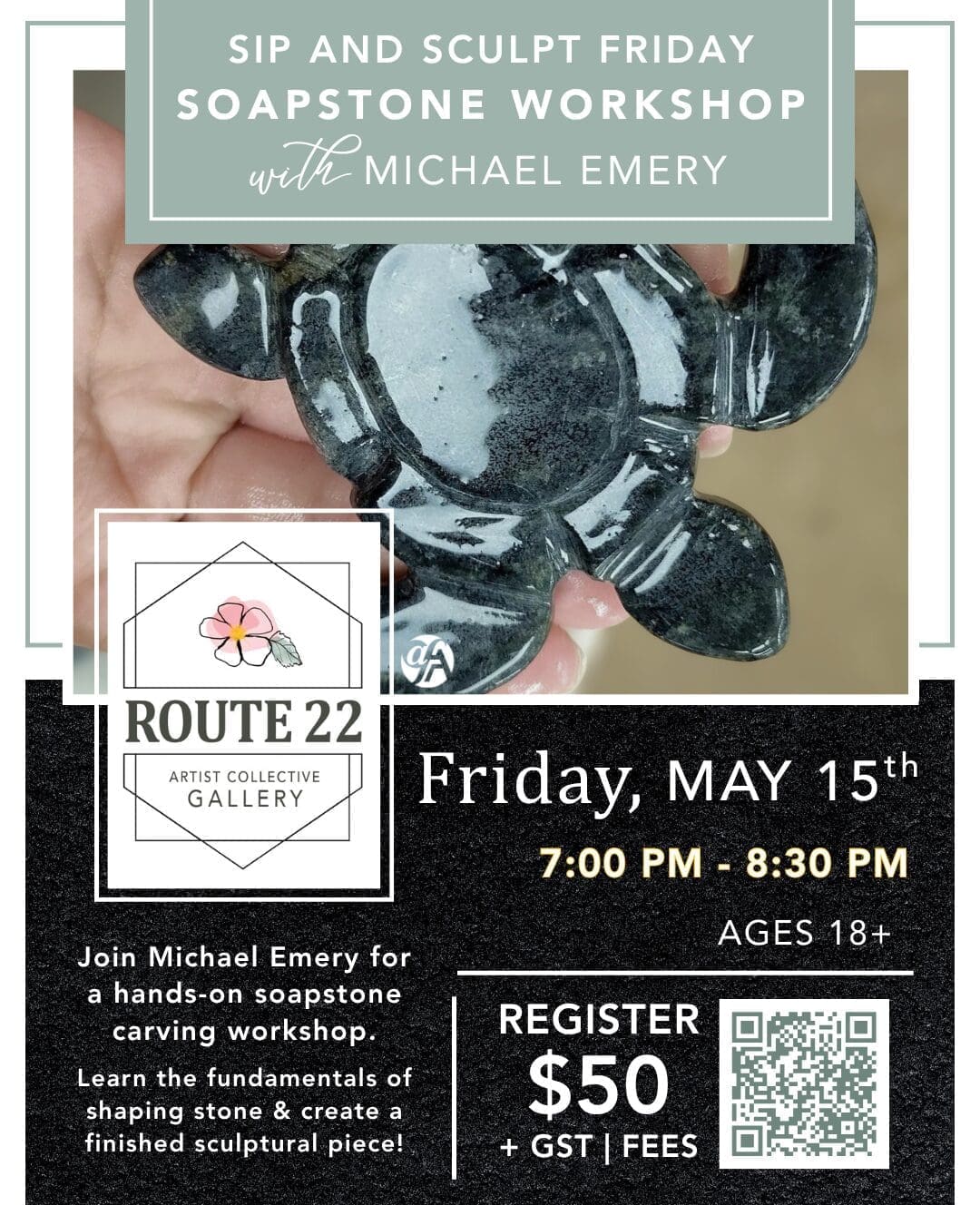 May 15 Sip and Sculpt Friday! 7:00 pm - 8:30 pm Route 22 Artist Collective Gallery 208 1st Street W., Cochrane Event Details Get Directions