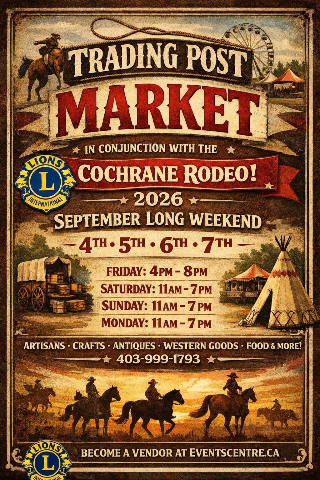 Trading Post Market – September Long Weekend 2026! Join us September 4th, 5th, 6th & 7th in conjunction with the Cochrane Rodeo for an incredible weekend of shopping, food, and western […]
