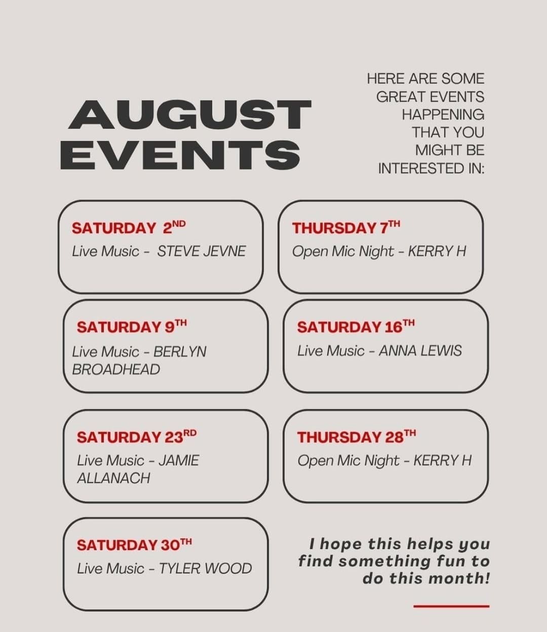 DOORS OPEN AT 1PM JAM STARTS AT 2PM