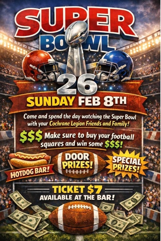 Did you know the Legion on 5th Avenue in Cochrane is family-friendly AND you do not need to be a member to attend their events or dinners? Well now you do! We usually serve up hamburgers, hot dogs and steak, PLUS we often have live entertainment to enjoy.