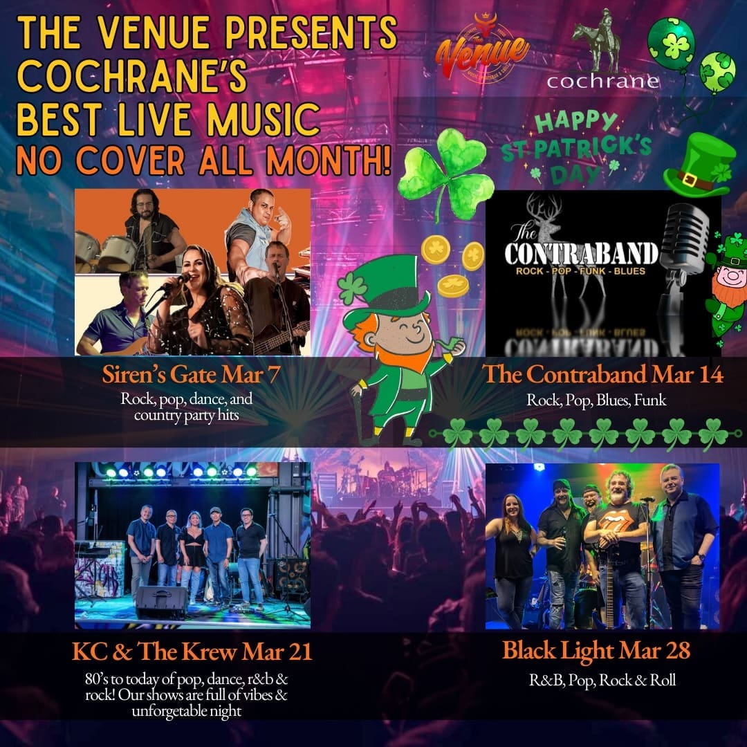 Mar 14 St. Paddy’s Day at The Legion 4:30 pm - 10:00 pm The Legion 114 Fifth Ave, Cochrane Event Details Get Directions