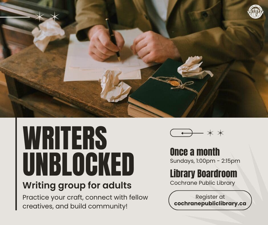 Are you a writer looking to practice your craft, connect with fellow creatives, and build a community? Then you’d be a perfect fit for the Cochrane Public Library's new adult writers’ group, Writers Unblocked! Join us on Sunday afternoons to share your work and ideas, get feedback from your peers, and explore new stories! All […]
