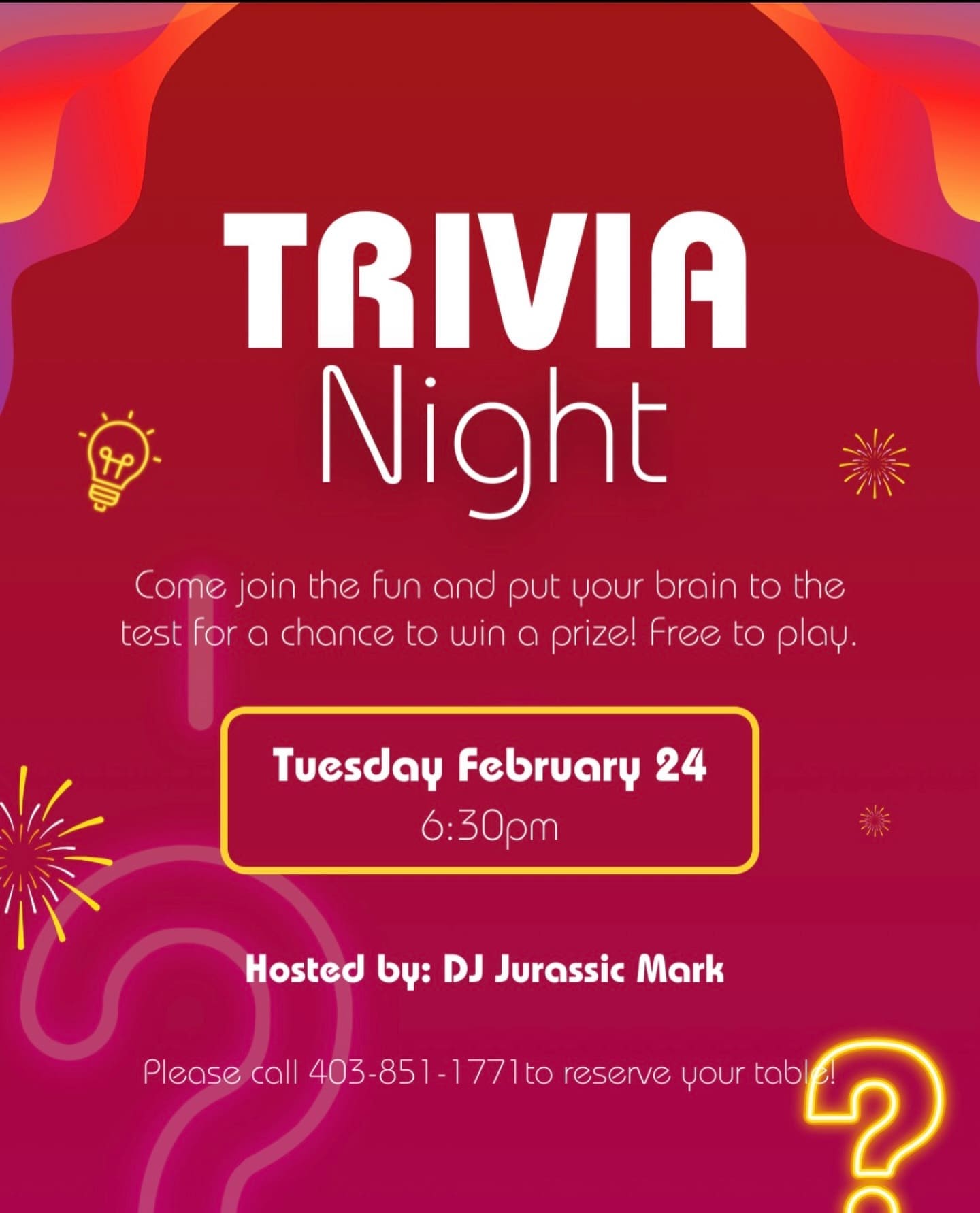 TRIVIA NIGHT AT ROCKY VIEW BREWING! TUESDAY, FEBRUARY 24 AT 630PM HOSTED BY DJ JURASSIC MARK