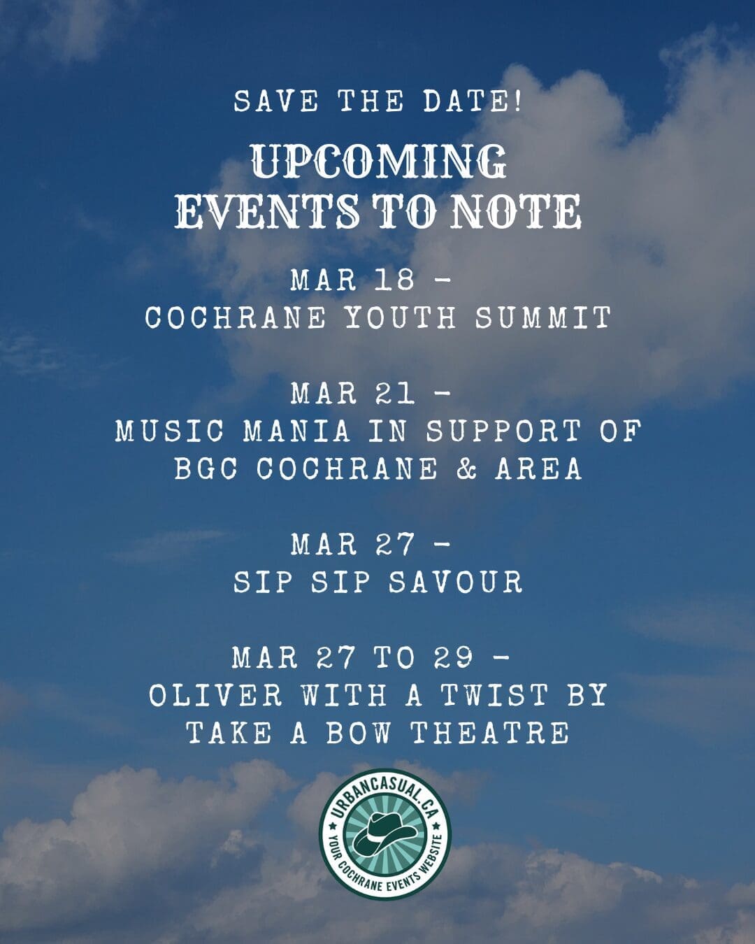 Your Guide to Cochrane, AB Events – March 13 to 15, 2026 + What’s Up on St. Patrick’s Day